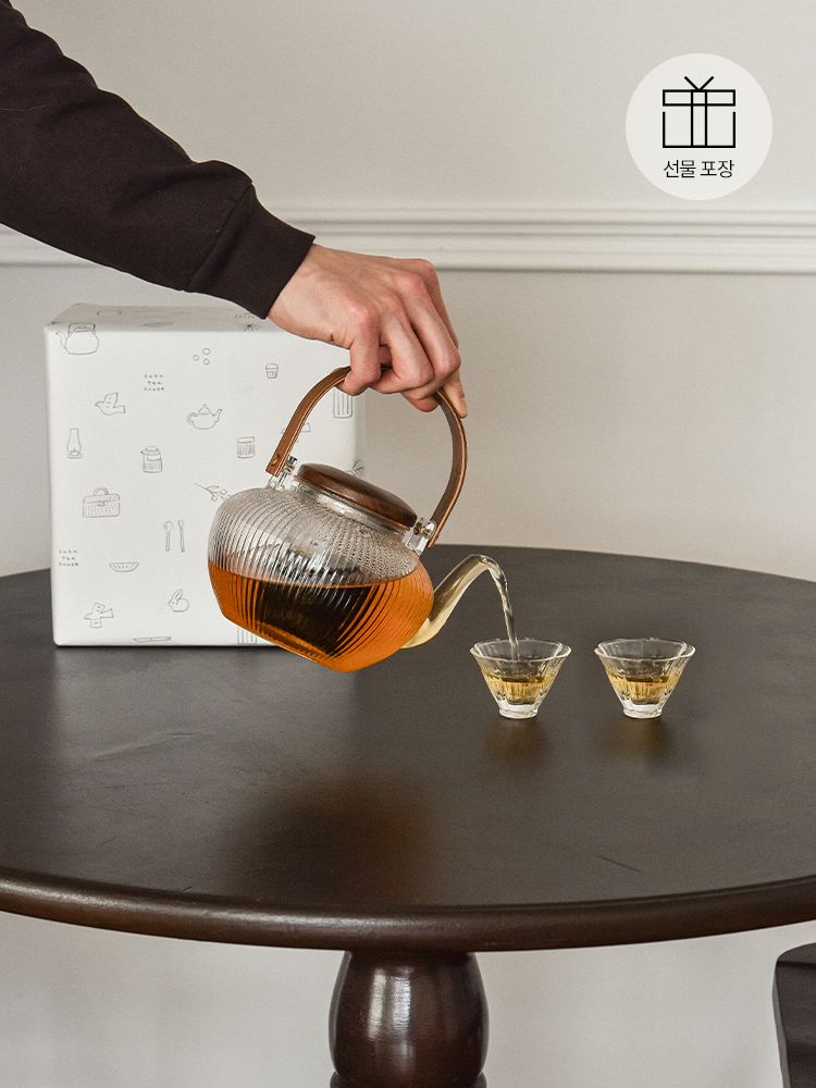 1. 스페셜 우드 내열유리 차주전자A (960ml)2. 우아한 로즈 유리 찻잔 2개3. [Gift] 홀리프티 4g 파우치 1봉